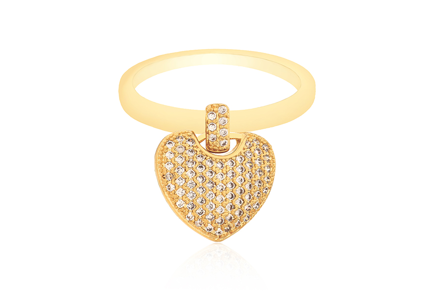 ANEL BANHADO EM PRATA LEVE, CORAÇÃO 12,50mm ALTURA