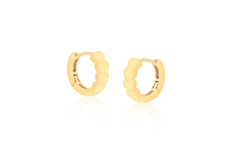 BRINCO BANHADO EM OURO, CORAÇÃO E PONTO DE LUZ 6mm ALTURA