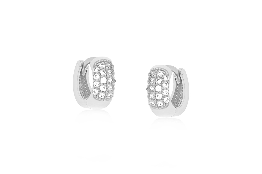 BRINCO EM PRATA, ARGOLINHA CLICK CURVADA CRAVEJADA, 10mm ALTURA