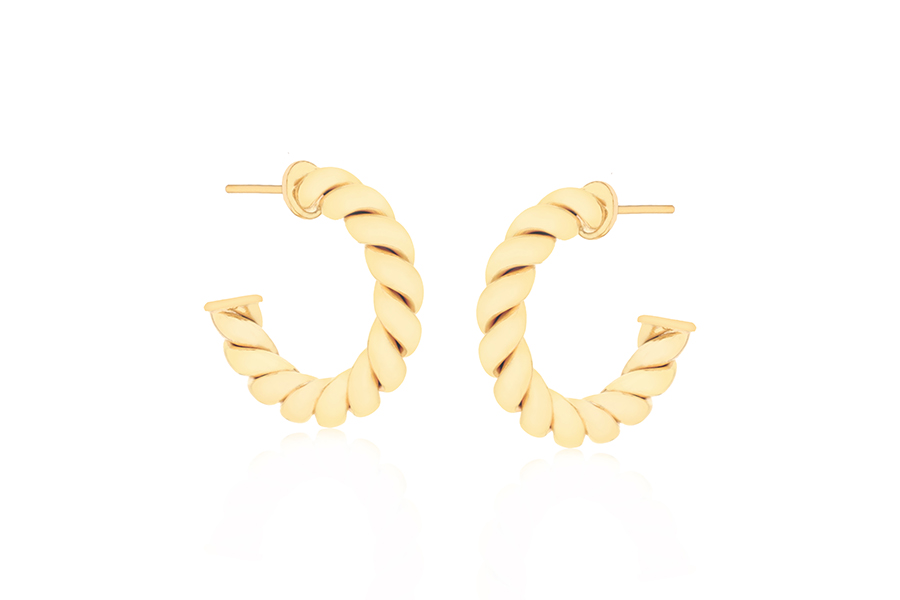 BRINCO BANHADO EM OURO, TREVO 9mm LARGURA, COLEÇÃO ÍCONES