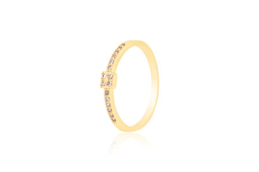 ANEL BANHADO EM OURO, 10mm LARGURA COM 3 ZIRCÔNIAS 2 E 4mm