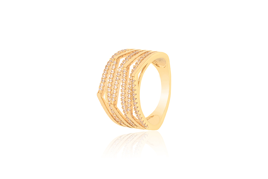 ANEL BANHADO EM OURO, 10mm LARGURA COM 3 ZIRCÔNIAS 2 E 4mm