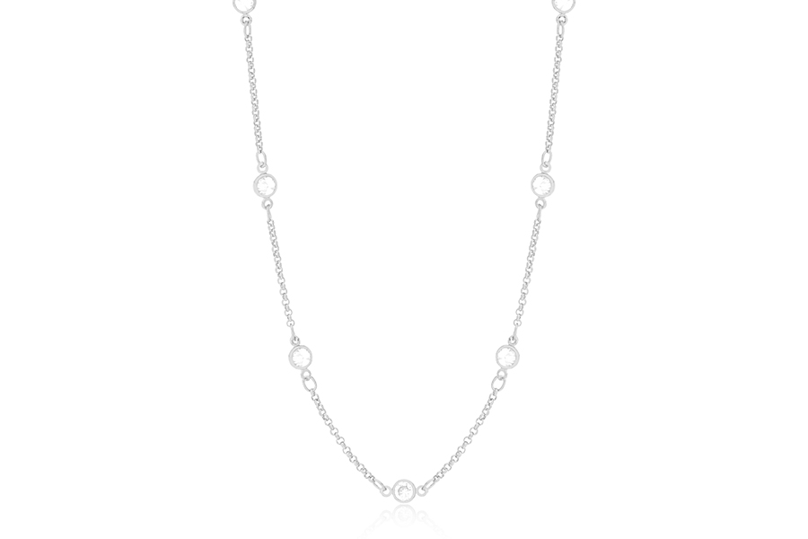 CHOKER BANHADO EM PRATA LEVE, ELO VENEZIANA 0,80mm, 36cm COMPRIMENTO, EXTENSOR 10cm COMPRIMENTO, COM ESFERAS DE 2,50mm