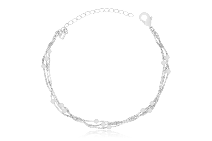 PULSEIRA BANHADA EM PRATA LEVE, TRIPLA, ELO VENEZIANA 0,80mm, 17cm COMPRIMENTO, EXTENSOR 5cm, COM ESFERAS 2,50mm