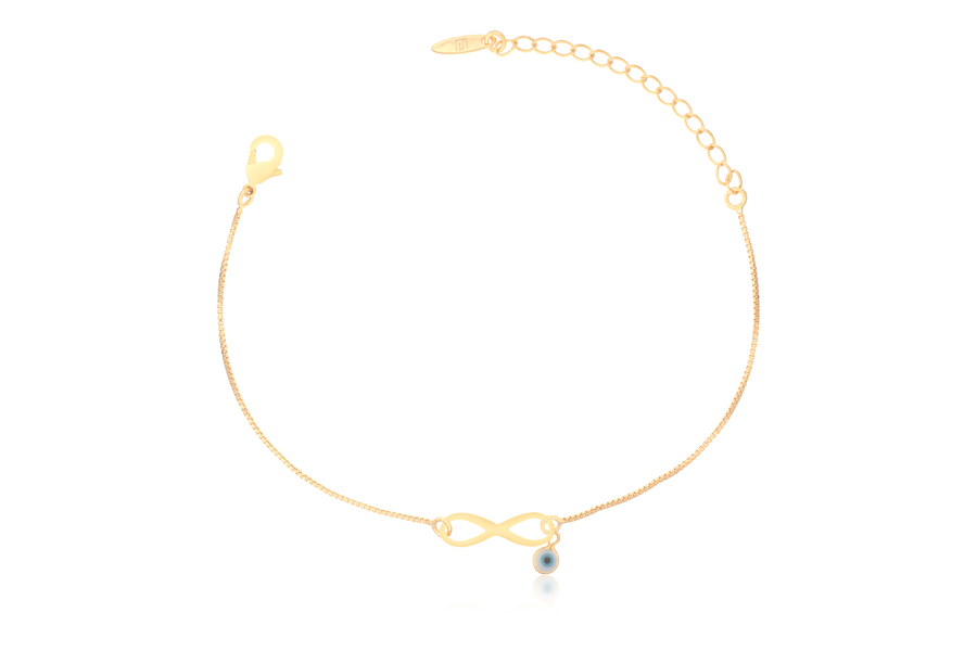 PULSEIRA TRADICIONAL BANHADA EM OURO, TERÇO, 18cm COMPRIMENTO