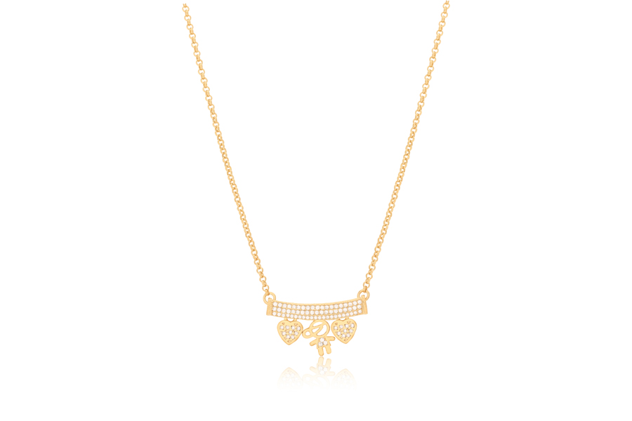 GARGANTILHA EM PRATA, ELO VENEZIANA 0,60mm, 40cm COMPRIMENTO, EXTENSOR 5cm, TRÊS CORAÇÕES, COM BANHO DE RÓDIO BRANCO, COLEÇÃO AURA