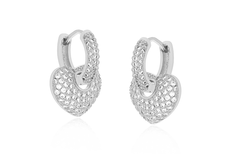 BRINCO BANHADO EM RÓDIO BRANCO, CORAÇÃO 14mm ALTURA