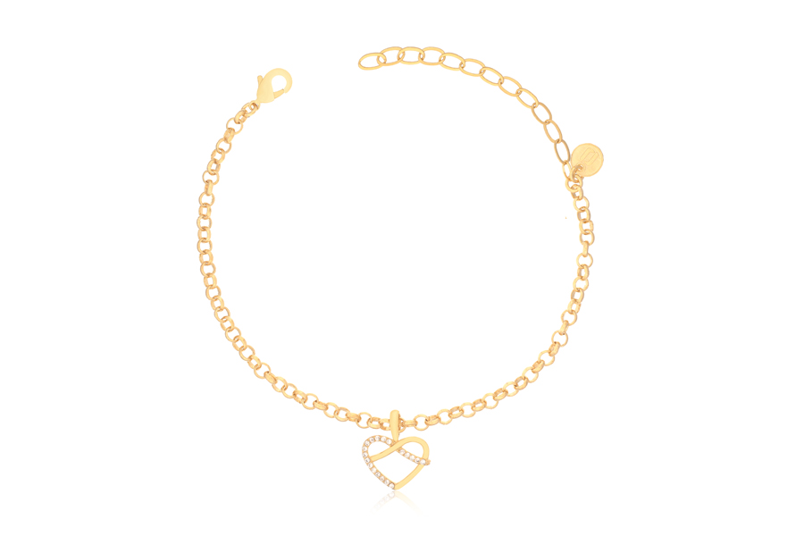 PULSEIRA BANHADA EM OURO, CORAÇÃO VAZADO 21mm LARGURA, PÉROLAS BARROCAS 9mm, 18cm COMPRIMENTO, EXTENSOR 5cm