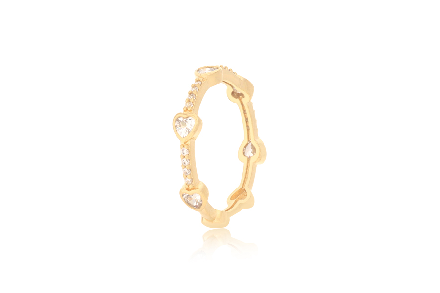 ANEL BANHADO EM OURO, 10mm LARGURA COM 3 ZIRCÔNIAS 2 E 4mm