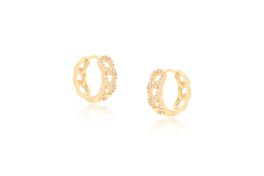 BRINCO BANHADO EM OURO, OVAL 7X5mm, COM 11 ZIRCÔNIAS BRANCAS OU NEGRAS